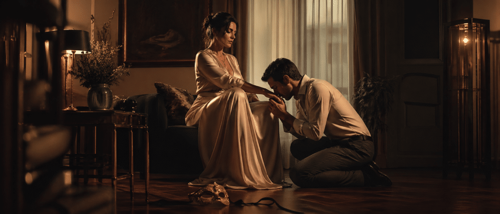 - Kontrolle durch Annahme: Seine Offenheit ist seine Submission; Ihre bewertungsfreie Annahme ist Ihr Kommando. Indem Sie einen Raum für seine dunkelsten Seiten schaffen, festigen Sie Ihre Kontrolle, anstatt sie abzugeben.