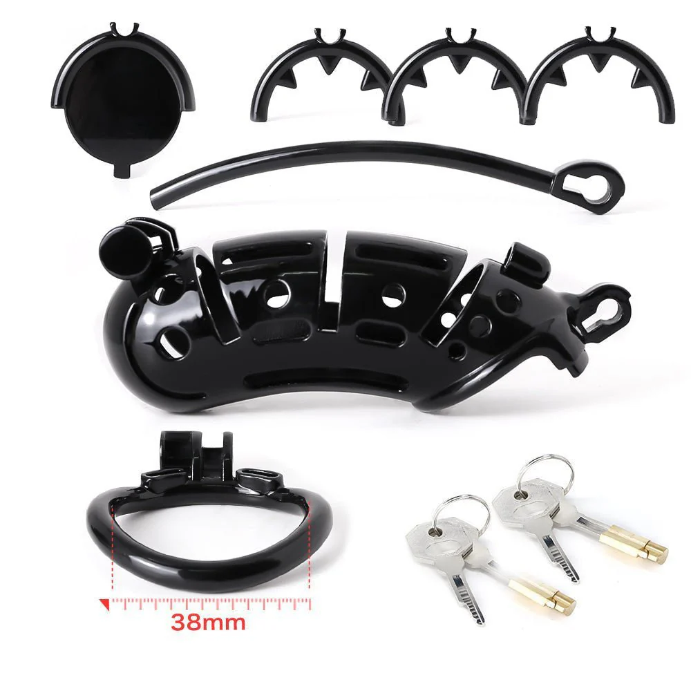 Der Käfig kann mit unterschiedlich großen Ringen und Abstandshaltern ausgestattet werden, so dass Sie den Komfort schrittweise verringern können, um die Disziplin zu verbessern.